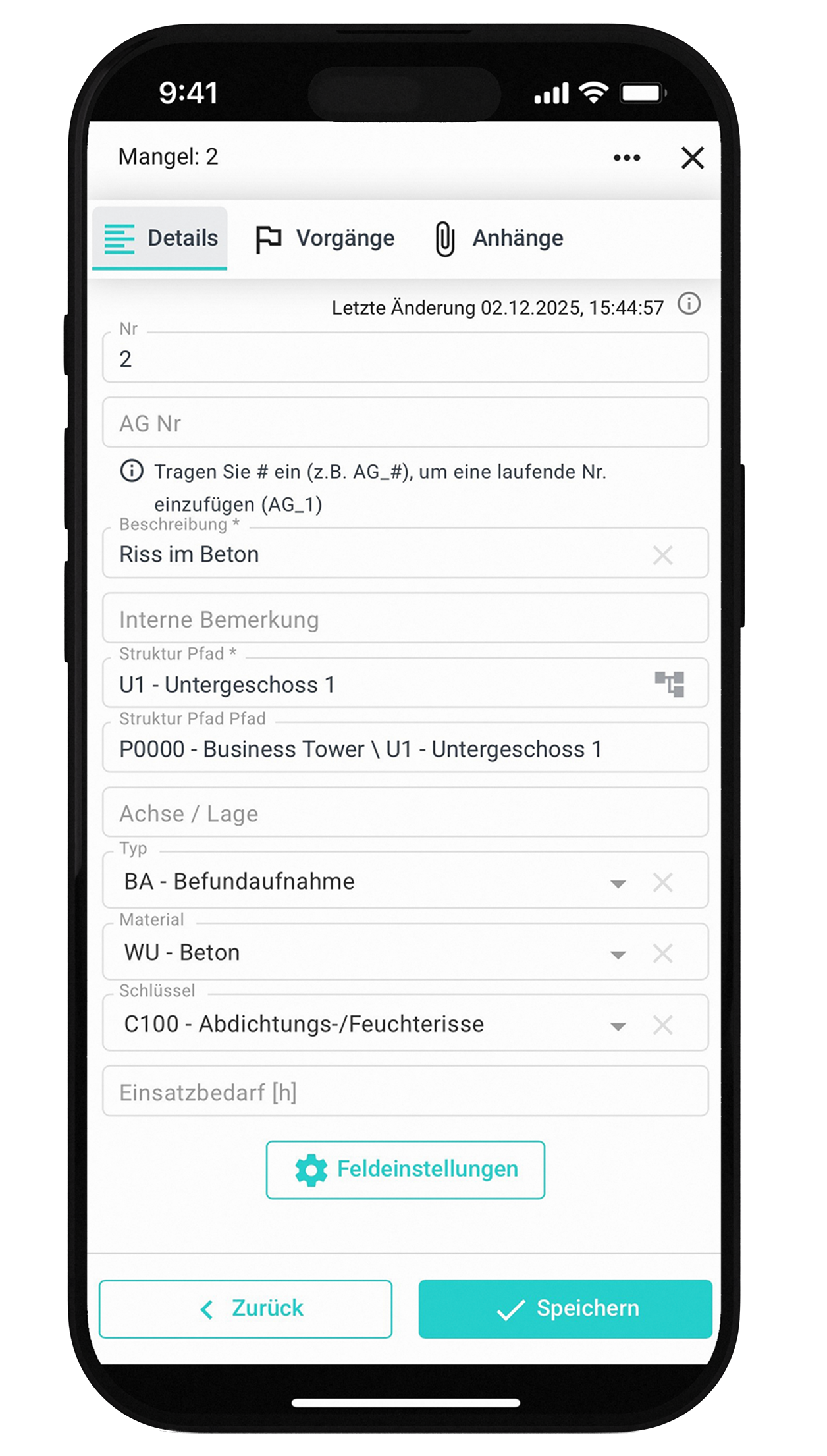 - Frei modellierbare Prozesse (z. B. Beauftragung technischer Befundprüfungen)