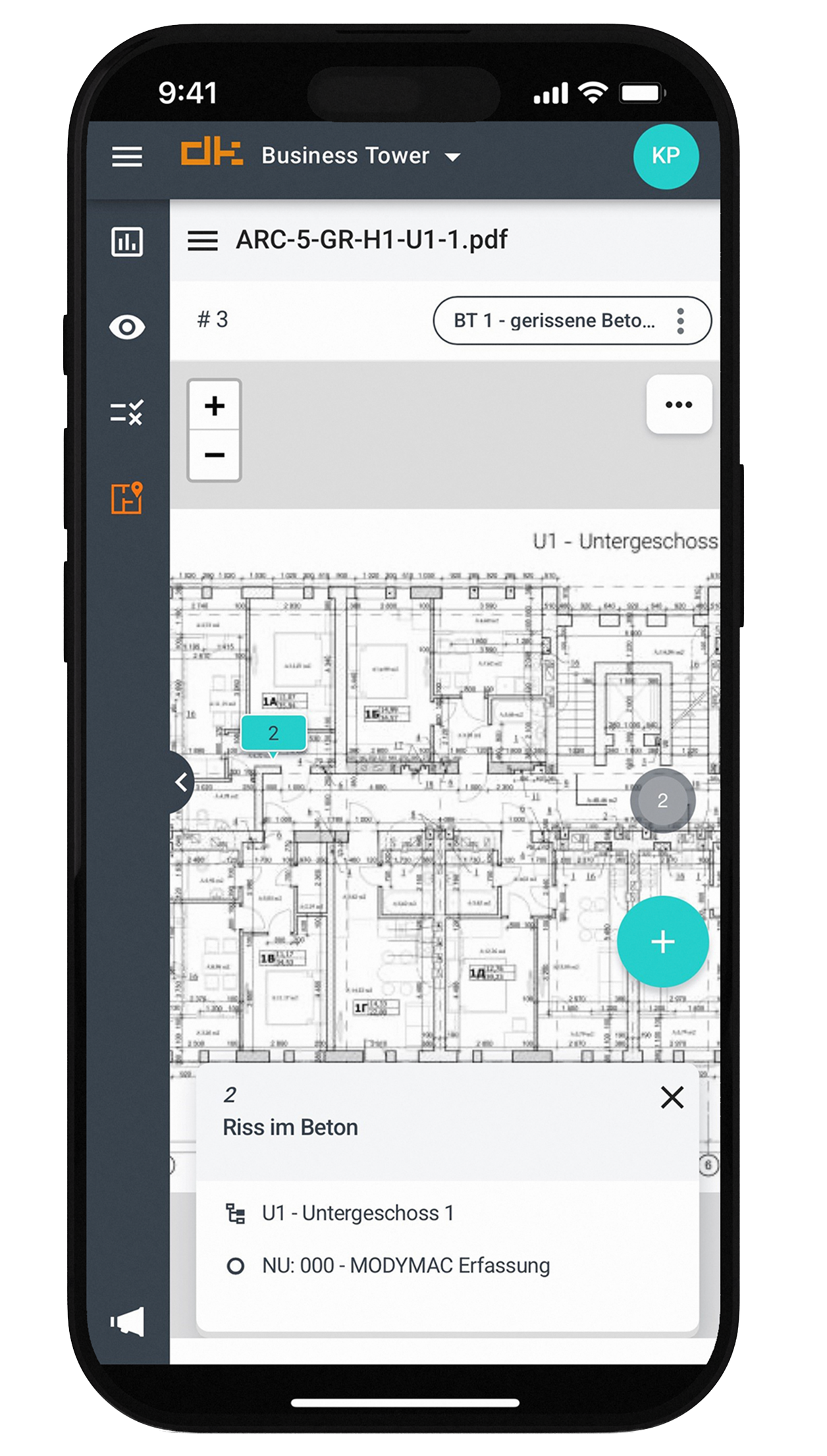 Mit der Bestandsdokumentation mydocma DK dokumentieren Sie den Ist-Zustand von Gebäuden und technischen Anlagen rechtssicher, strukturiert und jederzeit nachvollziehbar – die ideale Ausgangsbasis für eine effiziente Planung und Projektierung.