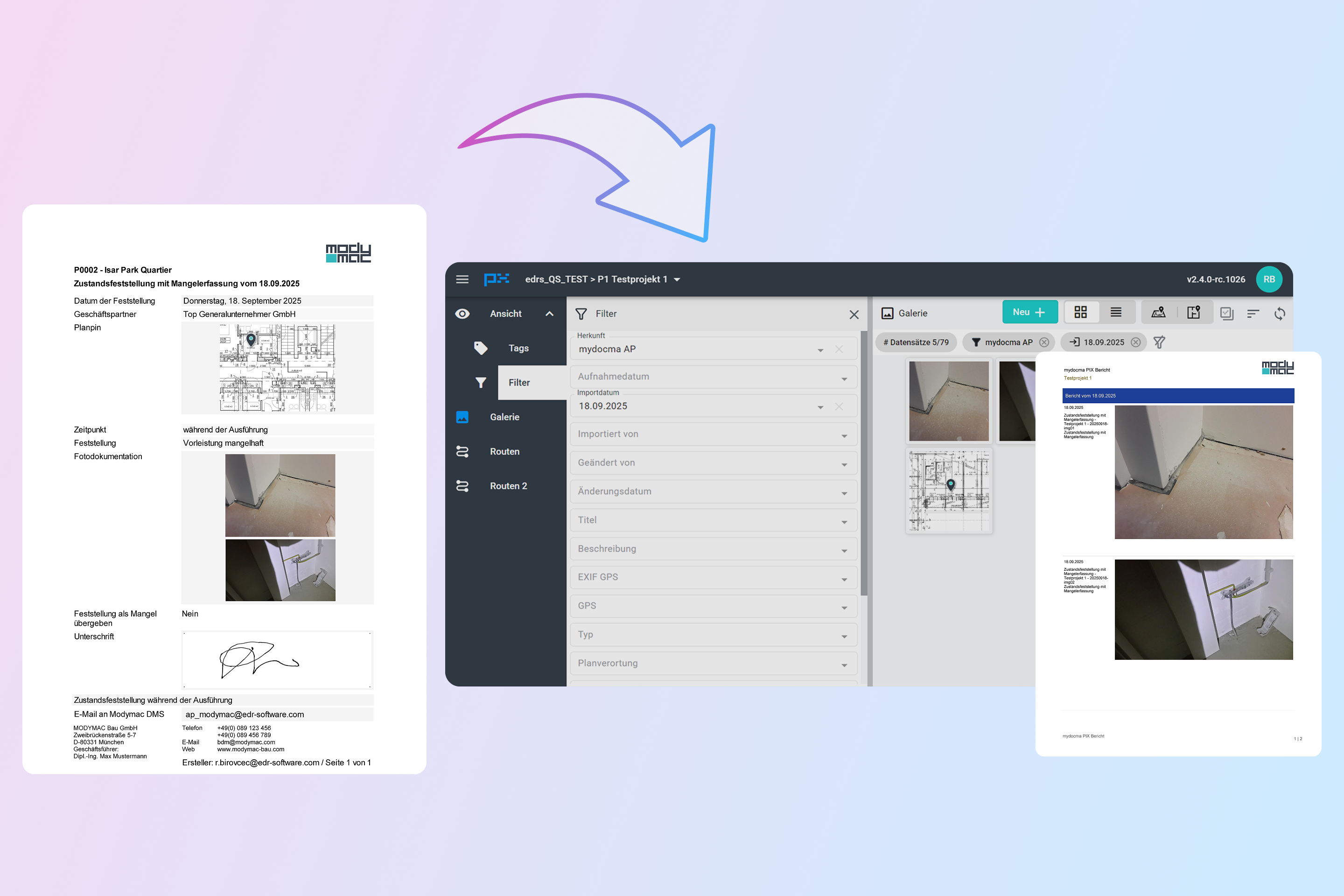 Ein Foto ist somit nicht nur ein Beleg im Formular, sondern wird durch die Übergabe ins Bildmanagement zu einem aktiven Informationsbaustein − jederzeit verfügbar und vielseitig einsetzbar im gesamten Projekt- und Qualitätsmanagement. So wird aus Integration echter Fortschritt − spürbar im Arbeitsalltag, wertvoll für jedes Projekt.