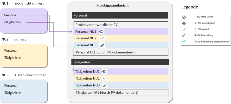 - Automatic data flow: The information entered by the subcontractor is automatically transferred to the overall project report.